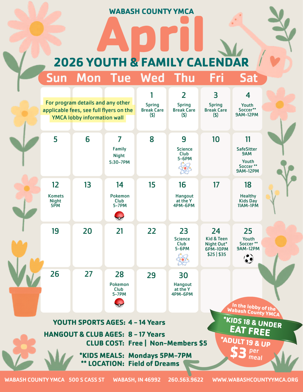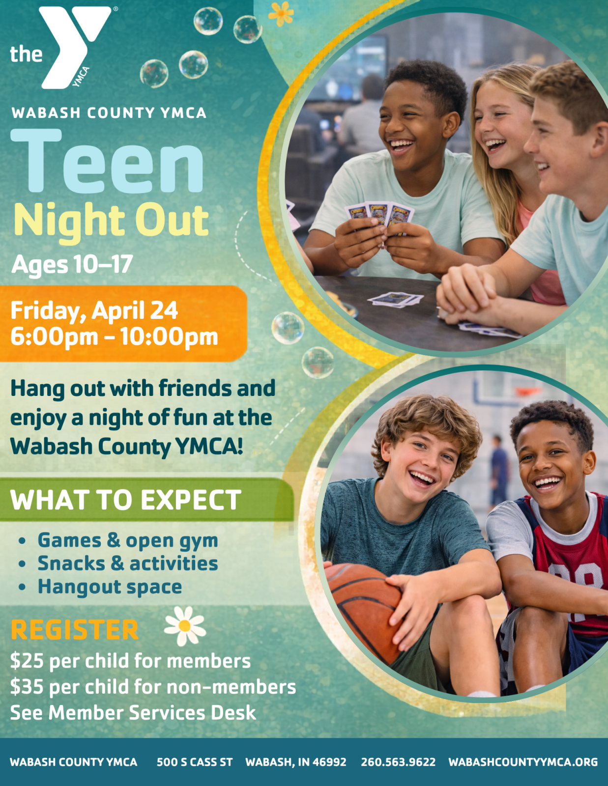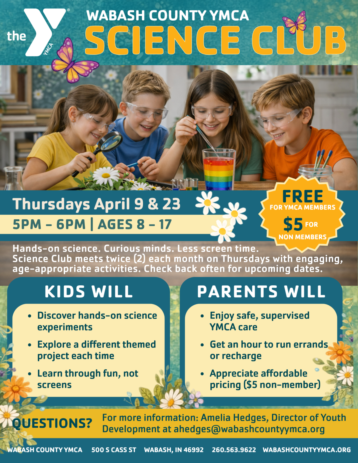 For more information, contact Amelia Hedges, Director of Youth Development, at 260.563.9622 or ahedges@wabashcountyymca.org