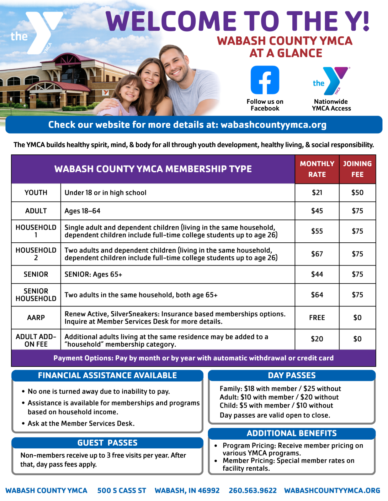 - Visit the Wabash County YMCA Member Services Desk