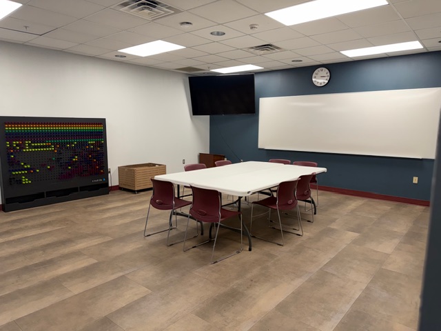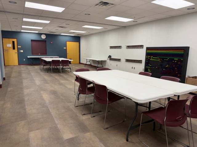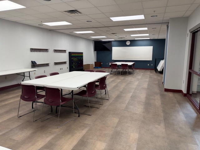This room is frequently used for YMCA activities such as Bingo, Euchre, meetings, summer day camp programming, and Family Nights. It is also well equipped for presentations and group discussions, featuring a large dry erase board and a television screen that can be connected for presentations or displays.