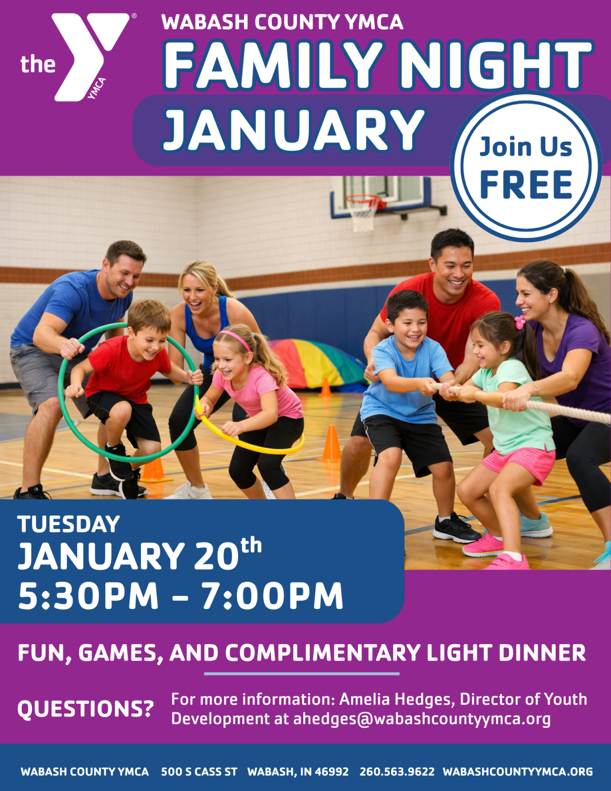 Contact Amelia Hedges if you have questions ahedges@wabashcountyymca.org or 260.563.9622