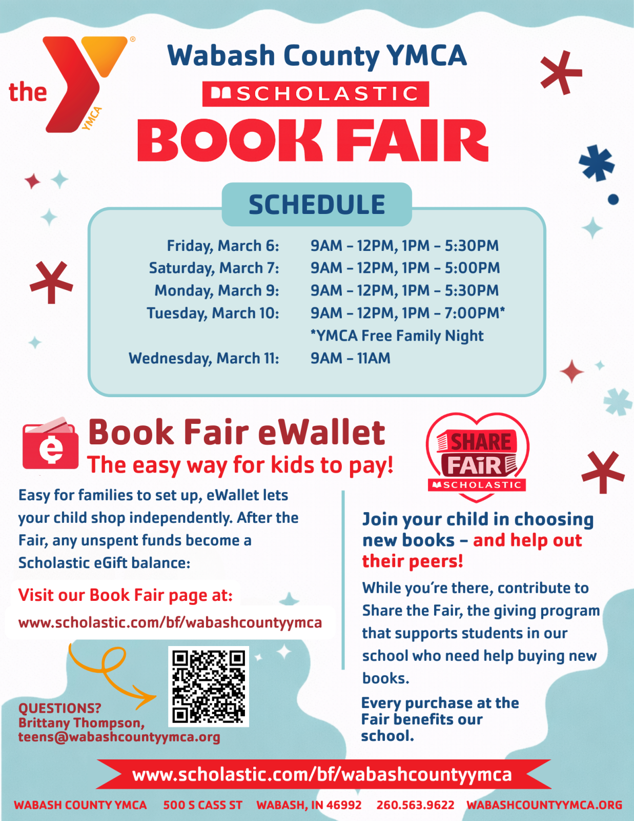 Visit www.scholastic.com/bf/wabashcountymca for details and to set up your eWallet.