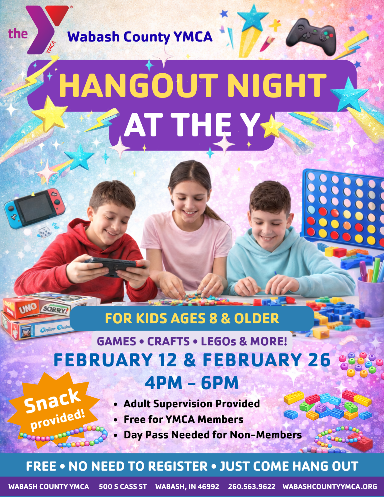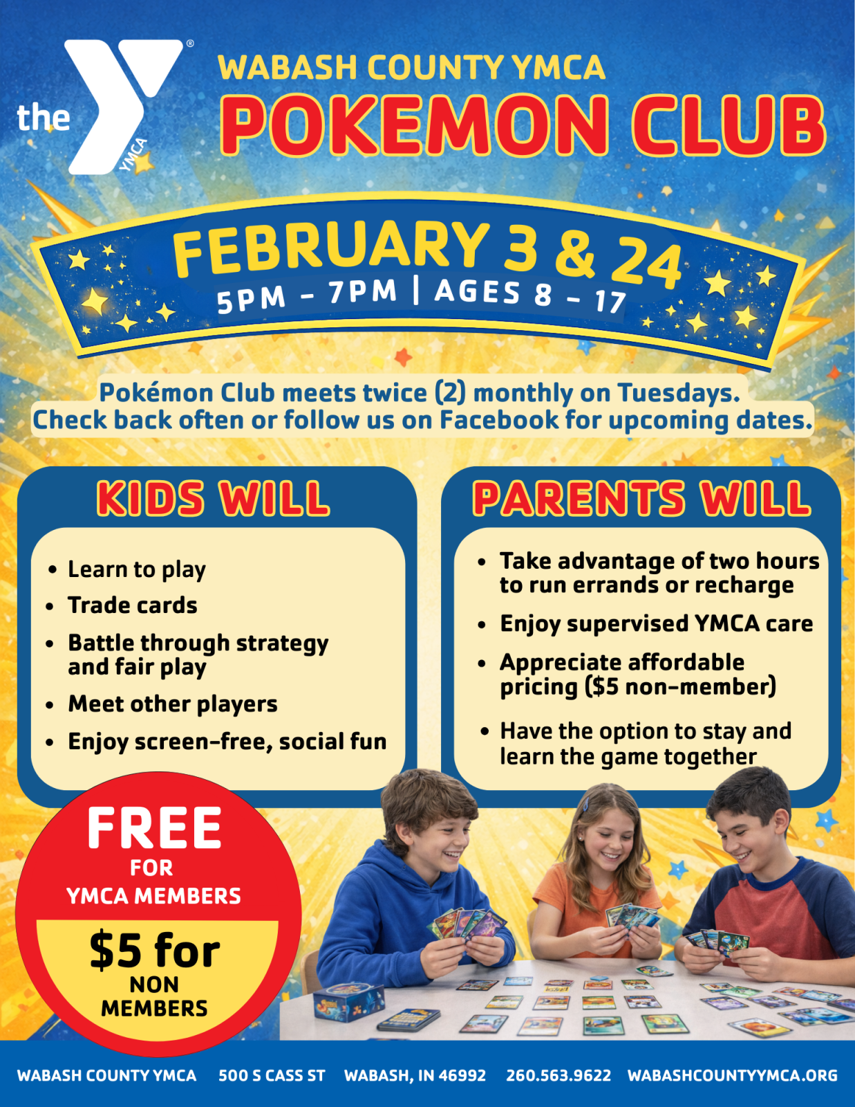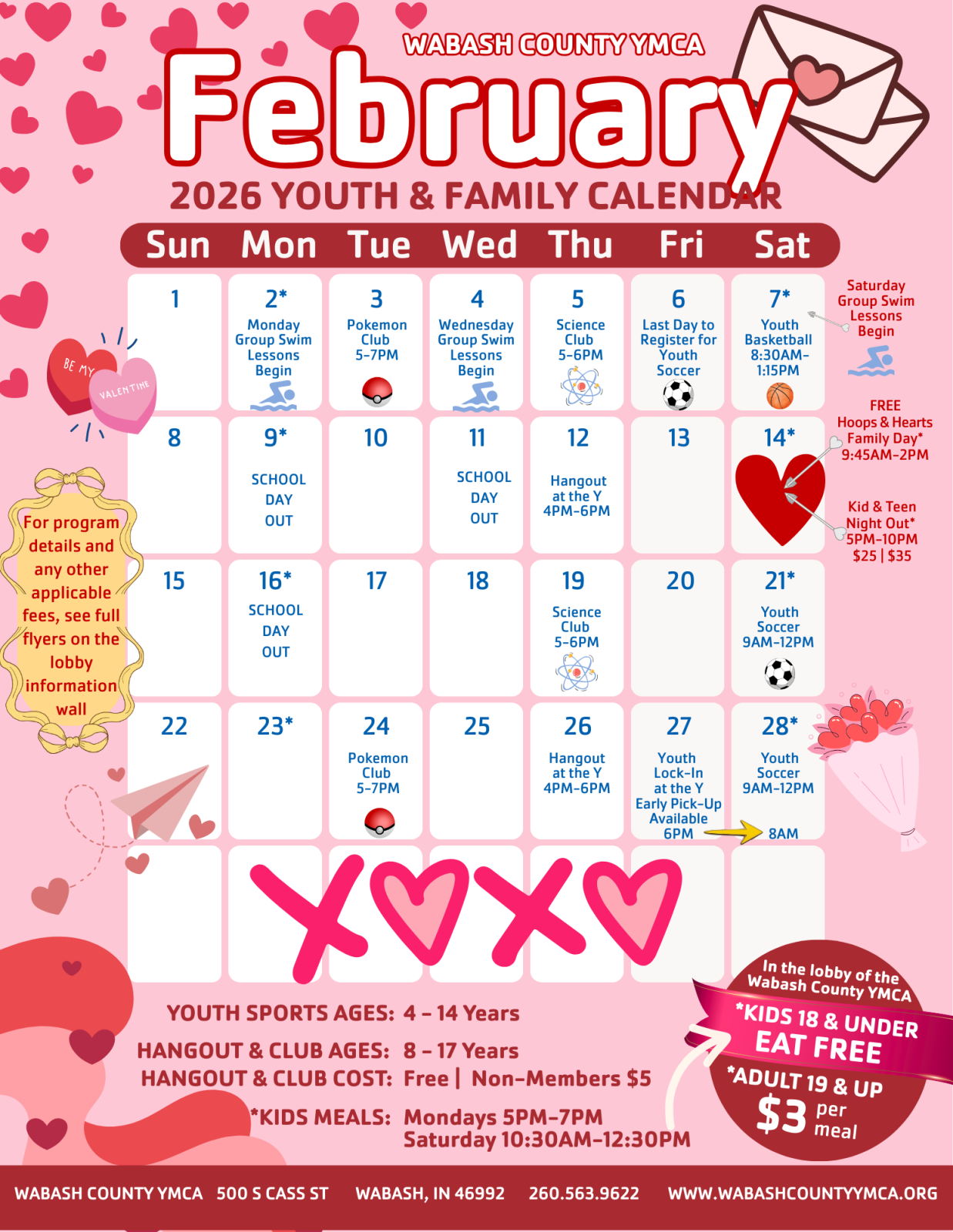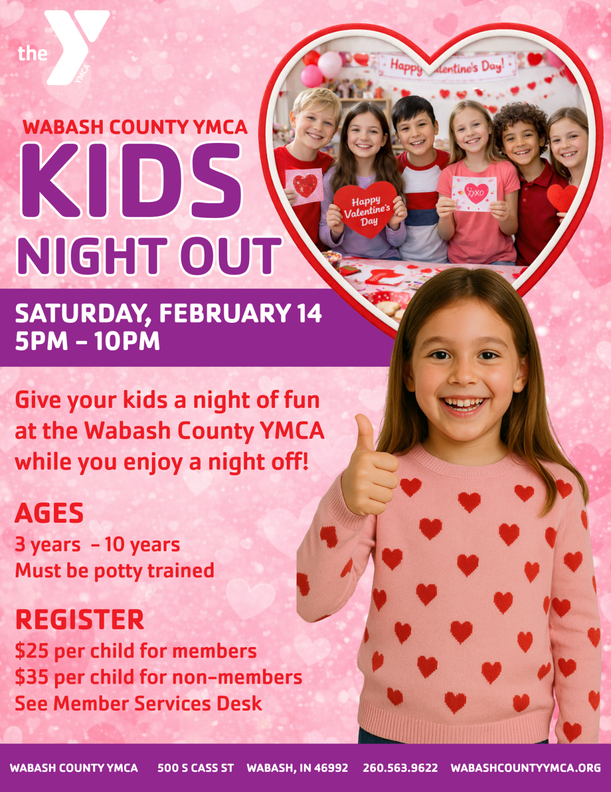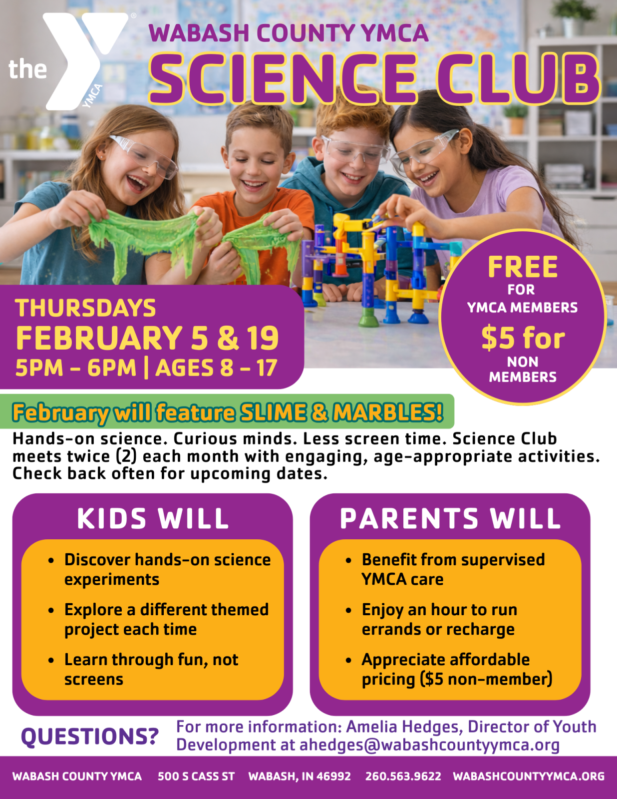 For more information, contact Amelia Hedges, Director of Youth Development, at 260.563.9622  or ahedges@wabashcountyymca.org