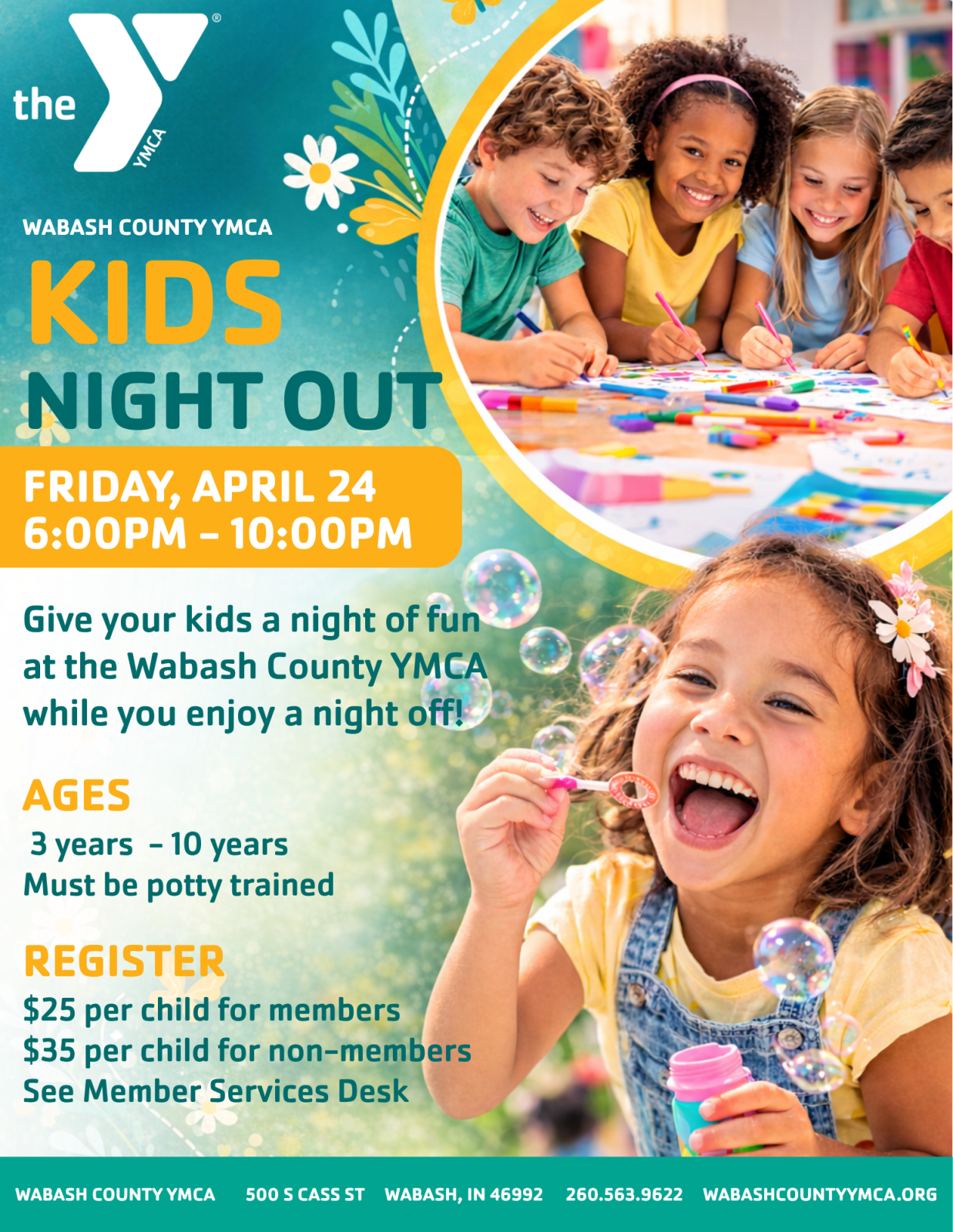 For more information, contact Amelia Hedges, Director of Youth Development, at 260.563.9622 or ahedges@wabashcountyymca.org